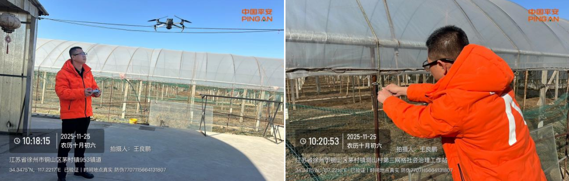 在徐州铜山区茅村镇,平安产险铜山支公司将“无人机风险勘查”纳入演练科目,服务团队操控无人机对1400余亩大棚开展“空中巡检”,快速识别棚膜破损、钢架松动等风险点;地面小组根据无人机反馈的精准坐标,当场协助农户完成棚膜修补、钢架加固作业。“演练不是‘走过场’,而是把寒潮前的真实风险减量服务做在前面。”铜山支公司负责人表示,本次演练既验证了“科技+人工”风险排查模式的高效性,更提前为大棚果蔬生产消除安全隐患,实现“演练提能、服务见效”的双重目标。